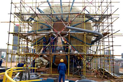 值得一提的是,項目核心乙醇裝置長周期設備陸續(xù)交貨到場安裝就位;土建施工總體完成73%,主要建筑物開始裝修,落地設備基礎交付安裝,壓縮機廠房及其基礎施工正在按計劃進行;裝置安裝工作全面推進,7臺反應器全部安裝完成,核心塔器正進行現(xiàn)場安裝攻堅。與此同時,熱動力站也在快馬加鞭的進行,目前鍋爐汽輪機房主體結構施工和裝修正已同步啟動,1號鍋爐鋼結構安裝完成,鍋爐及附件基本安裝完畢;2號、3號鍋爐正進行鍋爐鋼結構安裝,全力為今年11月鍋爐點火做好準備。