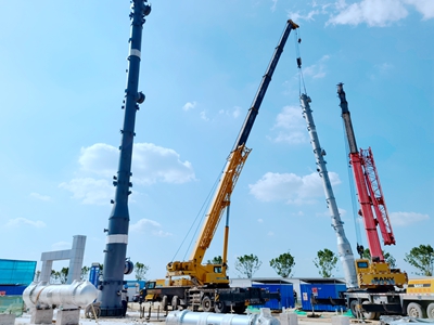 8月20日,從公司咸陽LNG儲氣庫配套20萬m3/d液化天然氣裝置EPC項(xiàng)目傳來捷報(bào),脫酸單元吸收塔和再生塔吊裝就位,設(shè)備首吊順利完成,這也標(biāo)志著該項(xiàng)目進(jìn)入安裝階段,現(xiàn)場設(shè)備安裝全面展開。