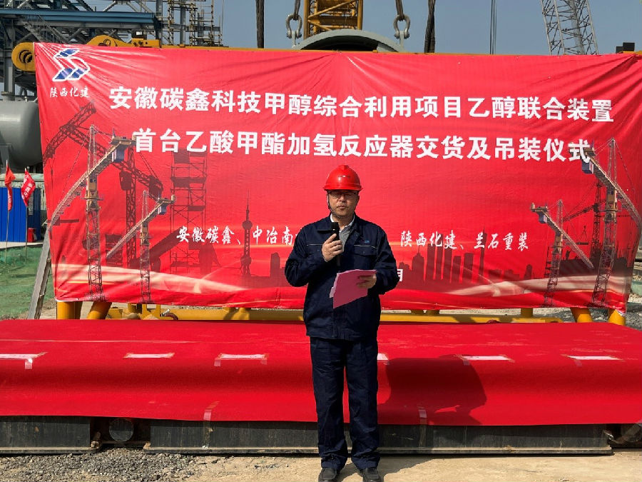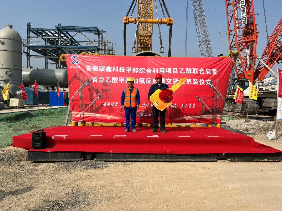 碳鑫乙醇項目首臺乙酸甲酯加氫反應器交付并吊裝