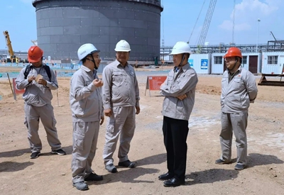 6月20日,北京石油化工工程有限公司黨委書記、董事長許緘濤到公司EPC總承包的延長石油靖邊天然氣儲氣調(diào)峰及配套LNG項目調(diào)研。強調(diào)要進一步加強安全生產(chǎn)工作,確保高質(zhì)量按時完成各項目標節(jié)點,為項目順利驗收打下堅實基礎(chǔ)。公司總經(jīng)理助理、安全總監(jiān)楊礫陪同調(diào)研。