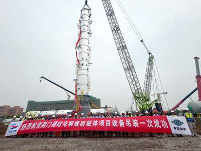 近日,由北京石油化工工程有限公司總承包的荊門源晗電池材料有限公司20萬噸/年乙醇裝置(含電子級乙醇)項目核心設備電子級脫輕塔首段吊裝順利完成,標志著乙醇主裝置大型設備安裝工作正式啟動,項目全面進入設備安裝和工藝配管階段。荊門源晗電池材料有限公司總經理、北油工程公司副總經理尹長炳,以及監理單位和施工單位主要負責人共同見證了此次重要吊裝作業。