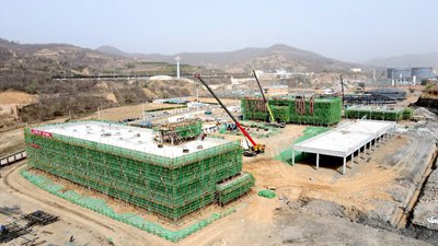 該項目廠前區建筑群總建筑面積6679平方米,包含綜合辦公樓、倒班宿舍及食堂等主要功能建筑。在施工過程中,面對陜北地區春季風沙大、施工場地狹長、受限及管控困難等不利條件,項目團隊充分發揮設計、采購、施工一體化優勢,通過提前策劃,界面統籌,有效組織,將上部結構工期精準控制至32天,較同類工程效率提升20%。