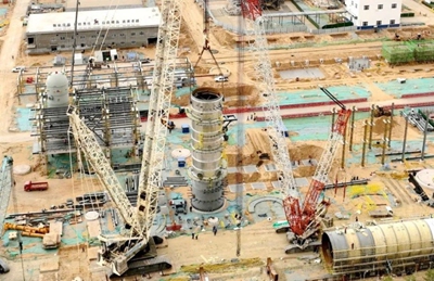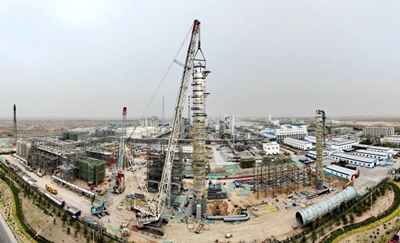 里程碑!凱越煤化乙醇項目核心塔器完成“空中合龍”