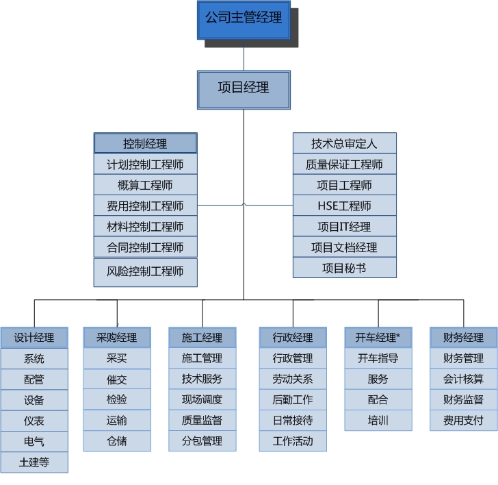 公司實行以項目經理負責制為核心、項目矩陣式管理為形式、公司各部門、各事業部為項目提供技術服務和支持、指導和監督為基礎的項目管理模式。在此基礎上,形成界面清晰、責權利明確的項目組織架構;規范項目管理制度和流程;理順項目經理和公司部室的管理和組織關系;按照項目矩陣式管理的要求,形成有利于項目執行的職責、規章制度、管理標準和程序,實現管理的正規化、程序化,建成強有力的項目執行團隊和執行能力,促進公司業務的更好、更快發展。